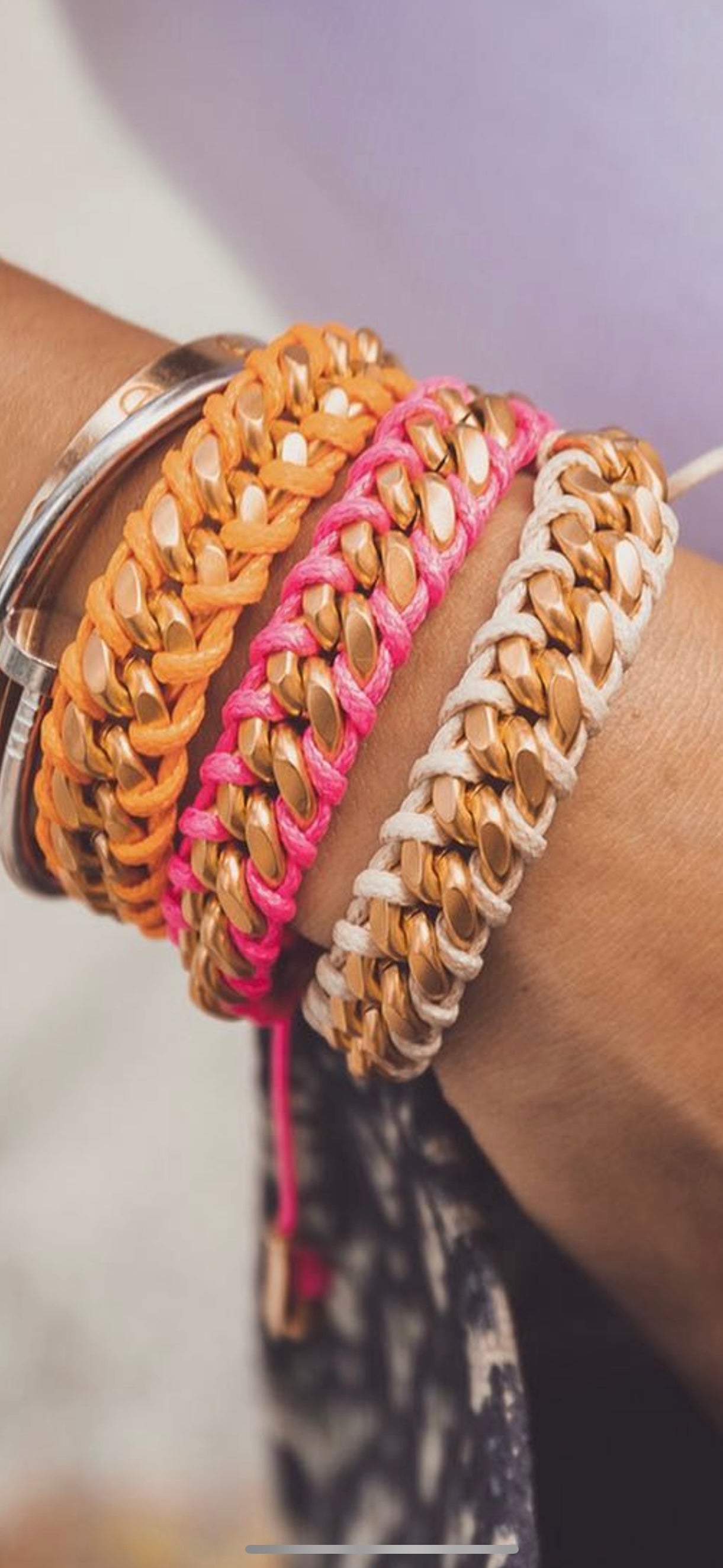 The signature HÜES Cuban link bracelet is joined by gold plated chain links on a desirable leather-like finish cord for an expressive appearance. This stackable bracelet is essential to our design ethos.